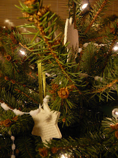 I always find it hard to photograph the christmas tree, it never comes out looking as twinkly and pretty as it really is. This year we have a teeny real tree on the windowsill, and I have left all my usual ornaments in the attic, deciding this year to have a change. I wanted to keep it really simple,because it is so small, and have just got white handmade decorations. Me and the kids made these, using cookie cutters, rolling pins and Das clay. we made patterns by rolling the clay out on (free!) textured wallpaper samples that I got from the DIY store when we bought our tree. I am really pleased at how they turned out. I found the sweet pompom garland at paperchase.